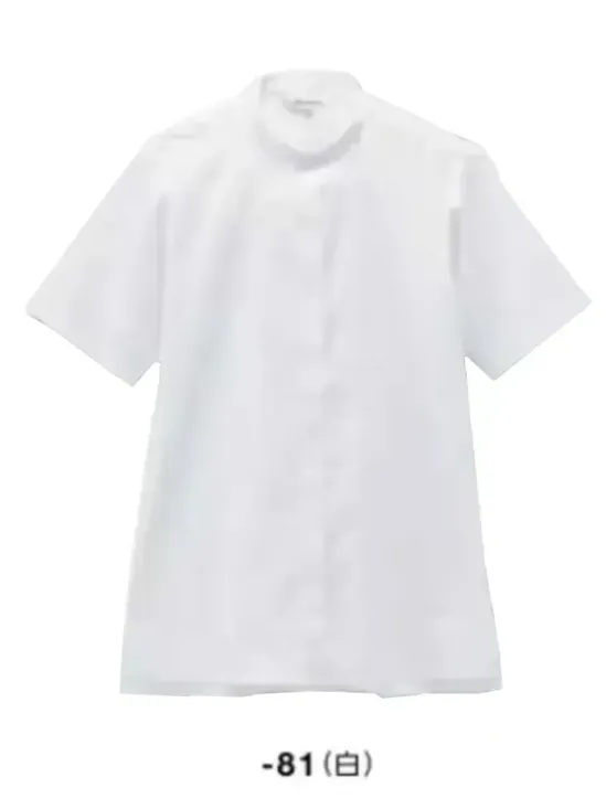 すっきりとした首元が印象的なスタンドカラーシャツ半袖。Primeflex®使用ストレッチブロード素材でポリエステル75%・綿25%。動きやすさときちんと感を両立し、夏場の接客・受付・サービスユニフォームに快適な着用感を提供します。