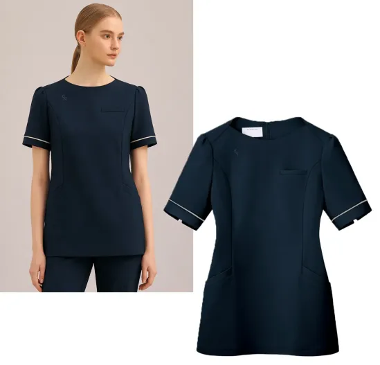 ESTNATION×FOLKのコラボレーションシリーズ。シンプルな印象の中に細部へのこだわりを散りばめ、洗練された美しさと信頼感が共存するチュニックです。フロント受付から施術まで幅広い業務に対応できるデザインで、絶妙なバランスに仕上げました。