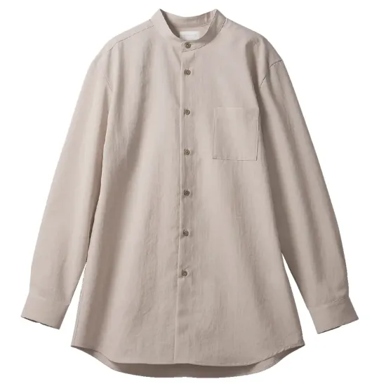 植物由来のやさしい色合いと洗練された佇まいを両立したOnibegie® Stand Collar Shirtシリーズの男女兼用シャツです。バンドカラーのすっきりとした印象に程よいリラックス感を加え自然体で着こなせる一着。環境に配慮した染色技術が生み出す深みのある色合いが空間に静かに映えます。