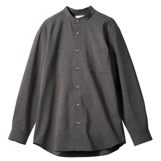 植物由来のやさしい色合いと洗練された佇まいを両立したOnibegie® Stand Collar Shirtシリーズの男女兼用シャツです。バンドカラーのすっきりとした印象に程よいリラックス感を加え自然体で着こなせる一着。環境に配慮した染色技術が生み出す深みのある色合いが空間に静かに映えます。