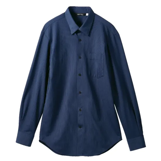 ・シワになりにくいため、日々のお手入れが簡単・光や角度によって浮かび上がるシャドーストライプが上品なアクセント・コンパクトに設計した衿元で、ボタンを留めても外してもすっきりした印象・袖下のマチによって動いてもシャツやエプロンが乱れにくい機能設計で、きれいな着姿をキープ・後身頃のタック位置を見直し、肩まわりが動かしやすいシルエットに